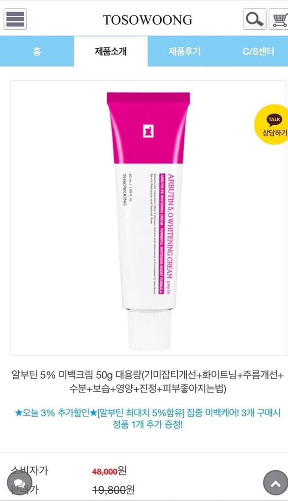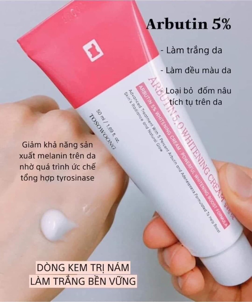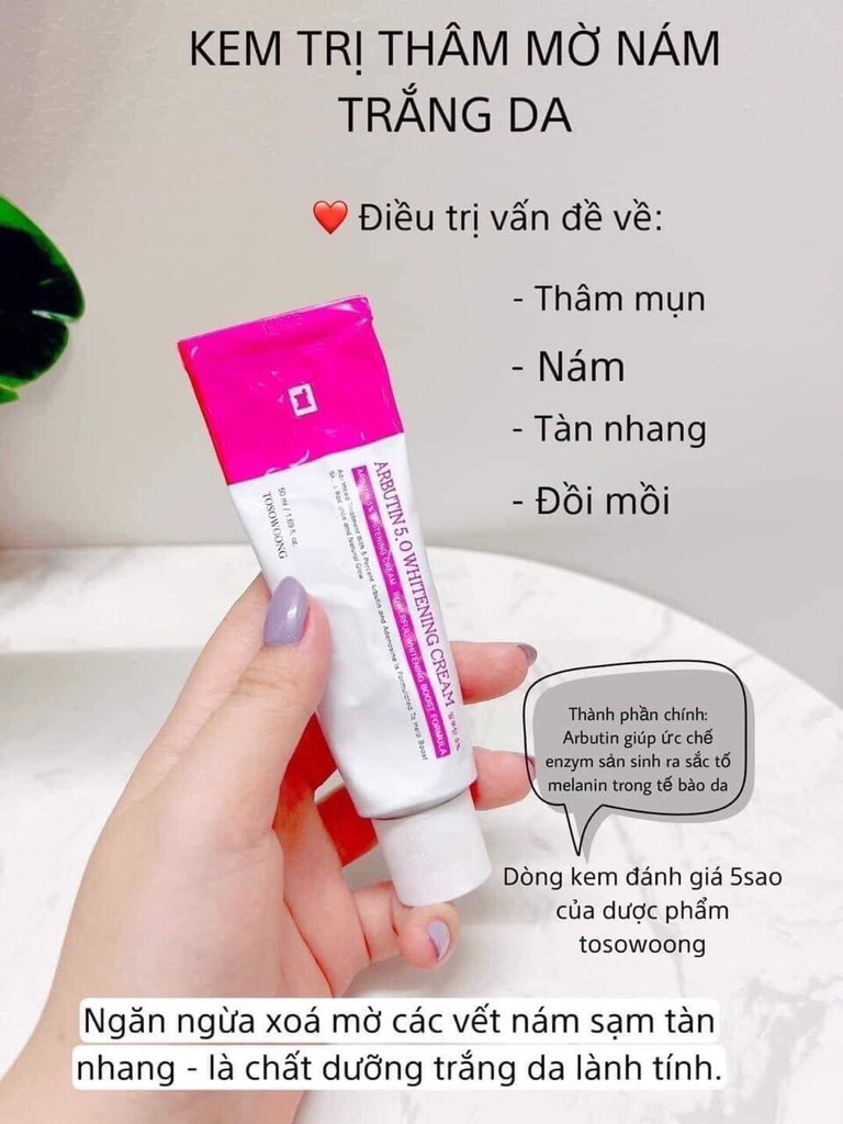 💎 Dưỡng trắng và trị nám hoàn hảo với Kem Arbutin 5.0 Tosowoong! 💎