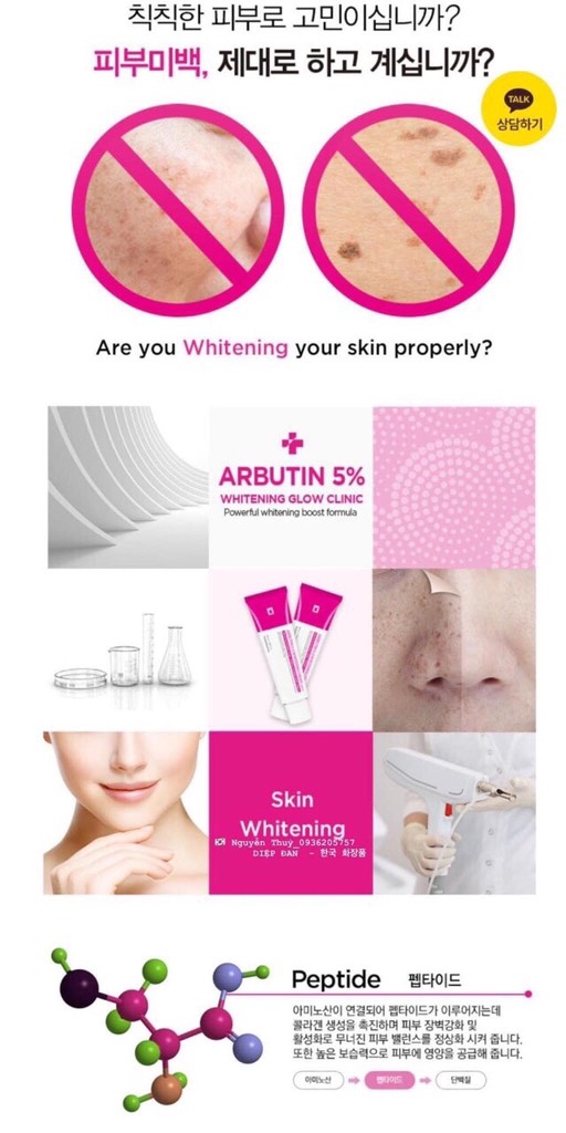 - Arbutin 5.0%: Thành phần làm trắng da hiệu quả, giúp giảm thâm nám và tàn nhang.